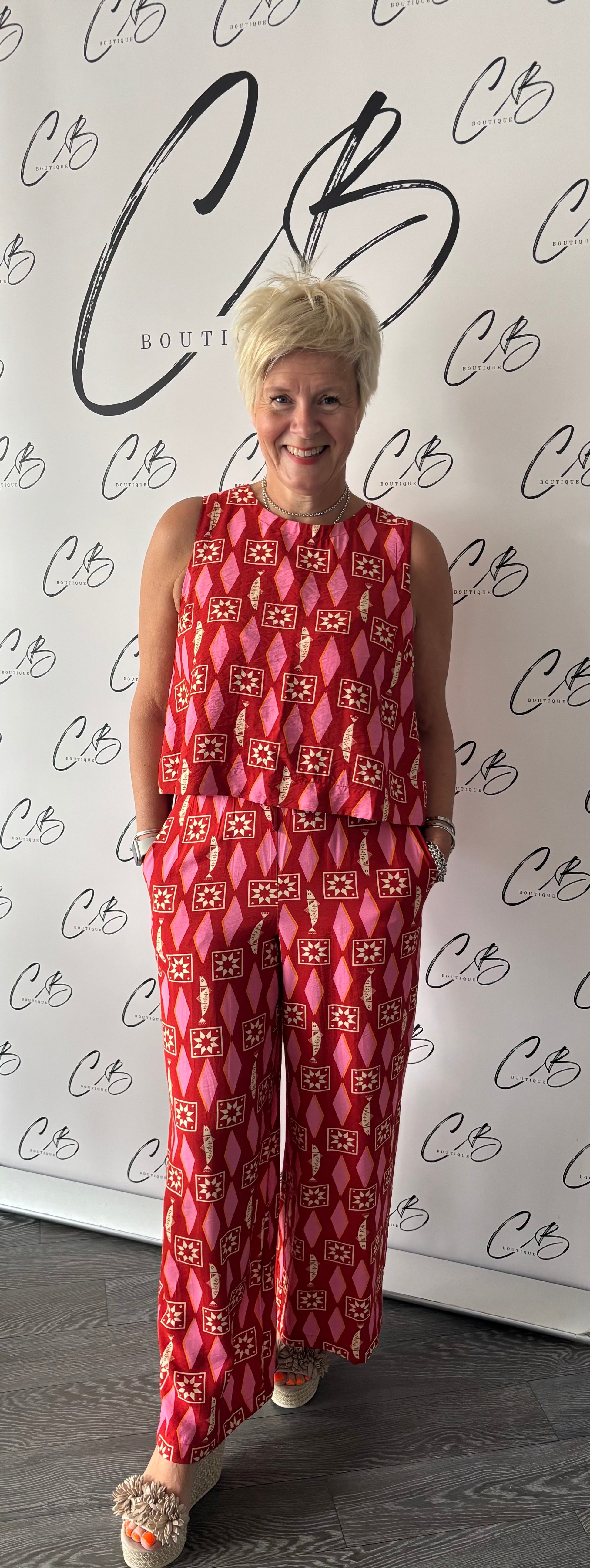 Sardinia Geo Print Wide Leg Cotton Trousers